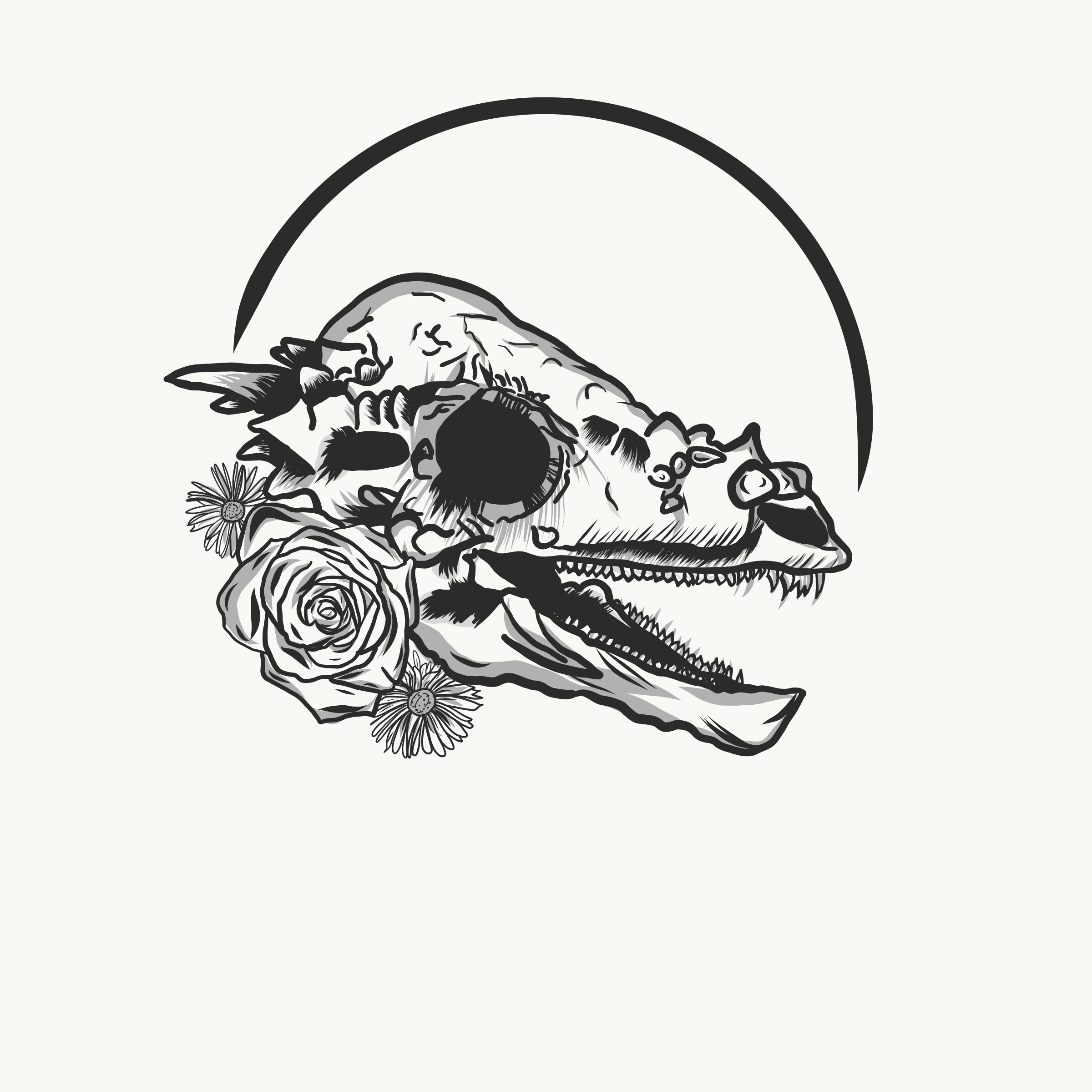 Pachycephalosaurs skull illustrated for silk screen printing.
